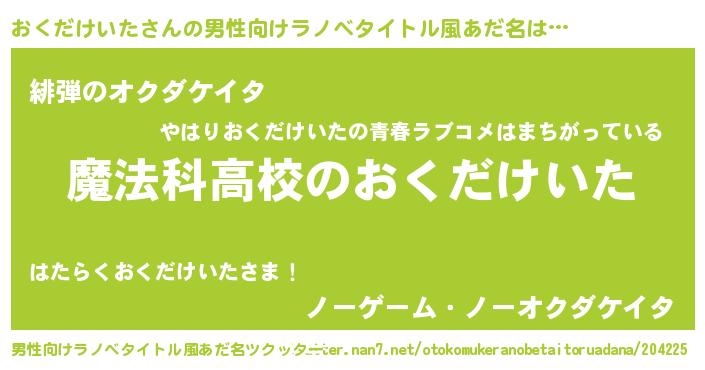 | 女子向けラノベタイトル風あだ名 | 『おくだけいたなんてお断りですっ。』 |