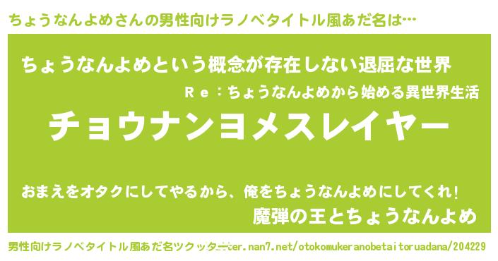 | 料理風あだ名 | 『ちょうなんよめごはん』 |