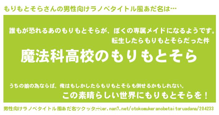 もりもとそらさんの男性向けラノベタイトル風あだ名をツクッター!