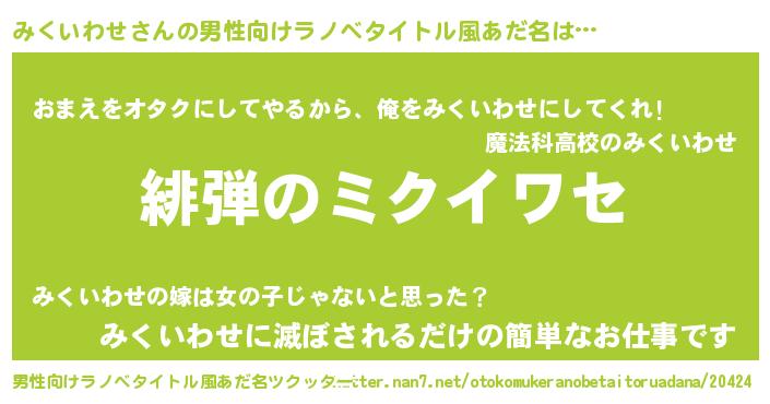 | ヒーロー風カッコイイあだ名 | 『正義の使者みくいわせ』『天弓騎士ミク』 |