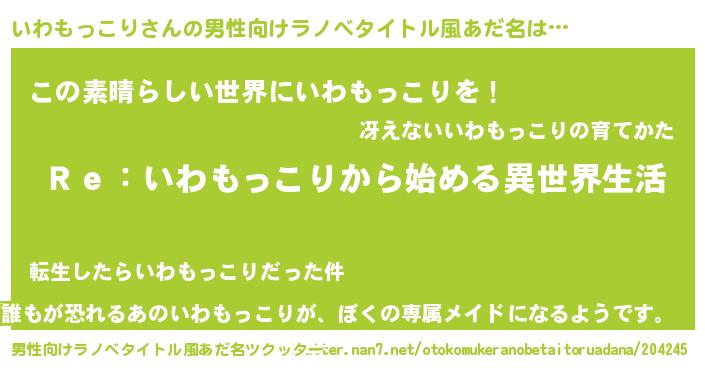 | 女子向けラノベタイトル風あだ名 | 『闇のいわもっこり』 |