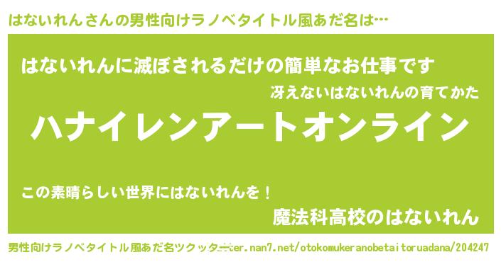 | ファンタジー風あだ名 | 『ハナフェル』『ゼハナトゥ』 |