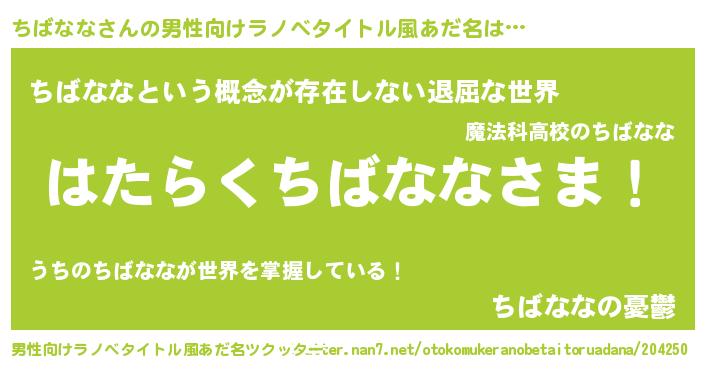 | ヘコむあだ名 | 『ちばなな(笑)』『ちばもー』 |