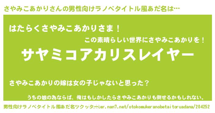 | 胡散臭い通販商品みたいなあだ名 | 『幸せが訪れる高級そうな絵画…その名も「さやみこあかり」』 |