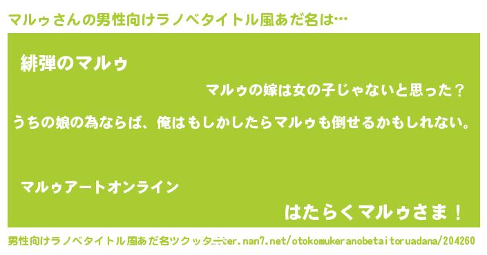 | ヒーロー風カッコイイあだ名 | 『ウルトラマルゥマン』『黄金騎士マル』 |
