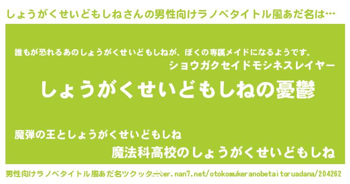 | 胡散臭い通販商品みたいなあだ名 | 『モテモテ間違いなしブレスレット…その名も「しょうがくせいどもしね」』 |