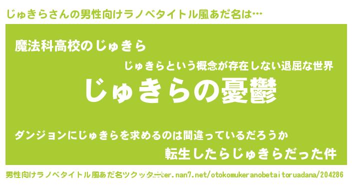 | 女子向けラノベタイトル風あだ名 | 『じゅきら姫と円卓の騎士』 |