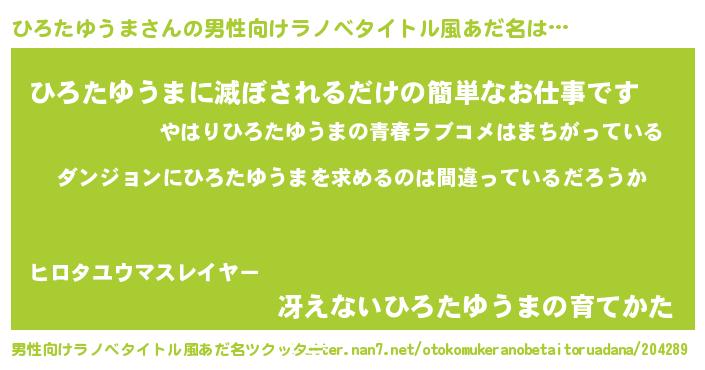 | 女子向けラノベタイトル風あだ名 | 『ひろたゆうまは平凡を望む』 |