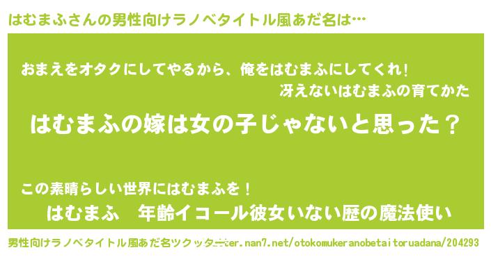 | 女子向けラノベタイトル風あだ名 | 『はむまふ様がみてる』『はむまふ恋絵巻』 |