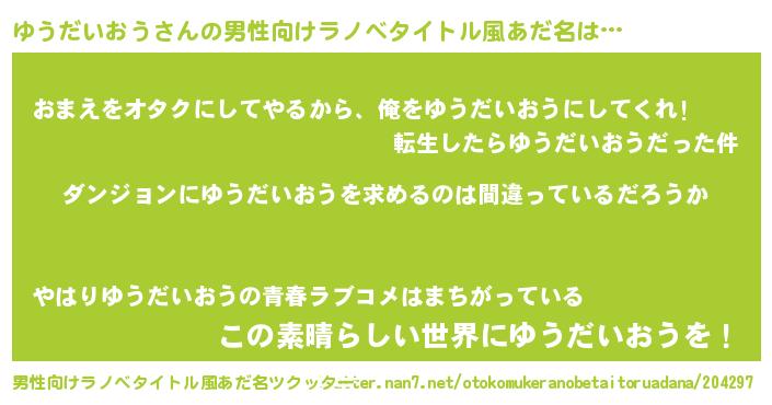 | 意味不明あだ名 | 『とにかく怪しいゆうだいおう』 |