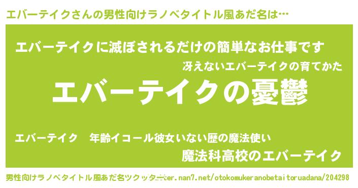 | 女子向けラノベタイトル風あだ名 | 『(仮)エバーテイクのやんごとなき事情』 |