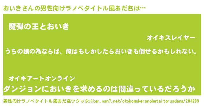 | ヒーロー風カッコイイあだ名 | 『ウルトラおいきマン』『仮面オイダー』 |