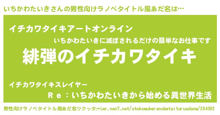 | 胡散臭い通販商品みたいなあだ名 | 『必ず成功するブレスレット…その名も「いちかわたいき」』 |