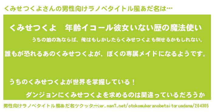 | 女子向けラノベタイトル風あだ名 | 『異世界でカフェくみせつくよを開店しました。』 |
