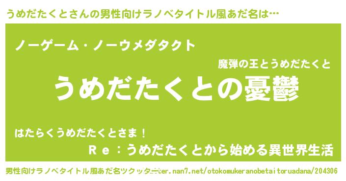 | ヒーロー風カッコイイあだ名 | 『スーパーウメダタクト』『仮面ウメダー』 |