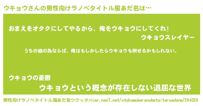 | 肩書あだ名 | 『ウキョウ大統領』『ウキョウ助教授』 |
