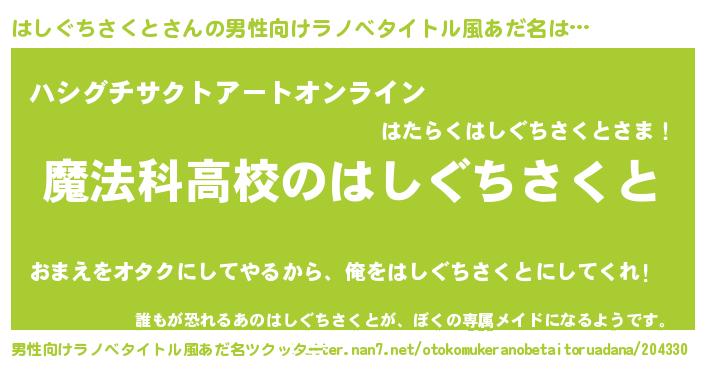 | 女子向けラノベタイトル風あだ名 | 『はしぐちさくとなんてお断りですっ。』 |