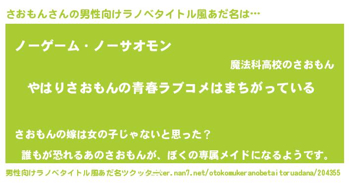| 女子向けラノベタイトル風あだ名 | 『さおもんの雑貨屋さん』 |