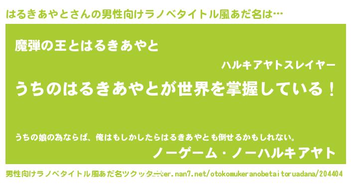 | 意味不明あだ名 | 『住所不定無職はるきあやと(12歳)』 |