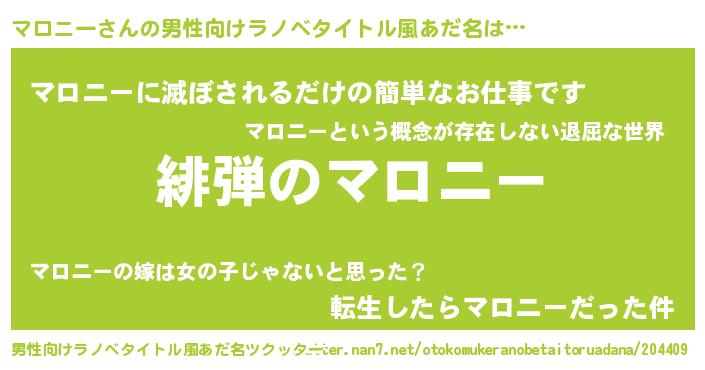 | 胡散臭い通販商品みたいなあだ名 | 『絶対に幸福をもたらす水素水…その名も「マロニー」』 |
