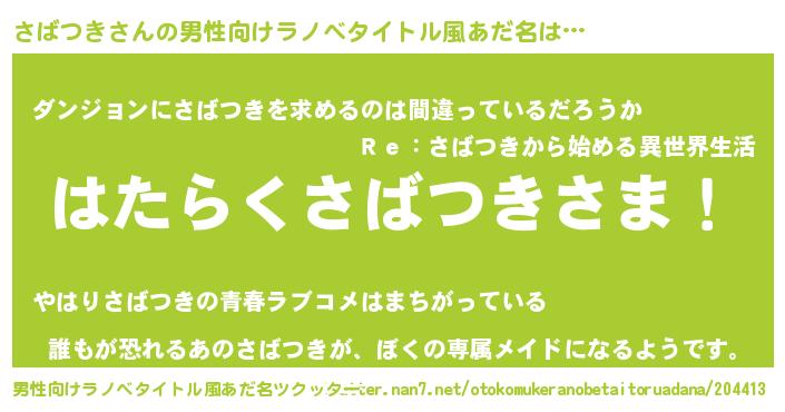 | ヘコむあだ名 | 『さばっ子』『さばつき(笑)』 |