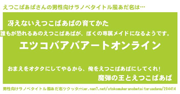 | 伝説のあだ名 | 『封印されし傭兵えつこばあば』 |