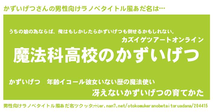 | ヒーロー風カッコイイあだ名 | 『超時空戦士カズイゲツ』『幻影騎士カズ』 |