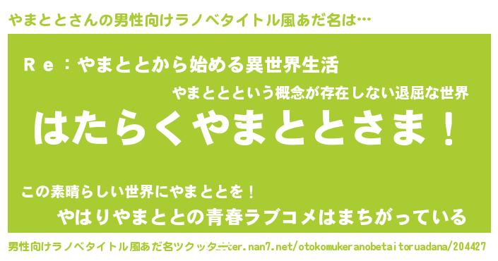 | ファンタジー風あだ名 | 『ゼヤマトゥ』『エターナルヤマトトー』 |
