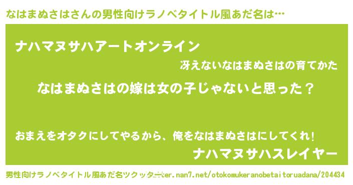 | 女子向けラノベタイトル風あだ名 | 『なはまぬさは様がみてる』 |