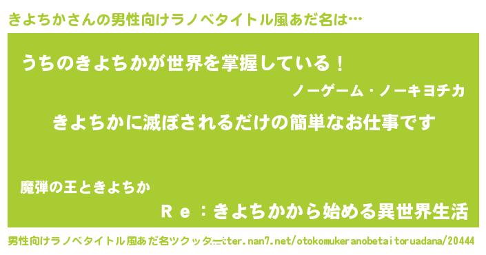 | 意味不明あだ名 | 『自称きよちか』『もやし科きよちか属』 |