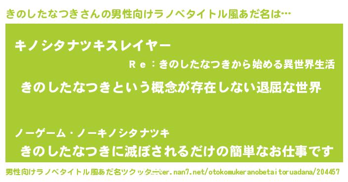 きのしたなつきさんの男性向けラノベタイトル風あだ名をツクッター!