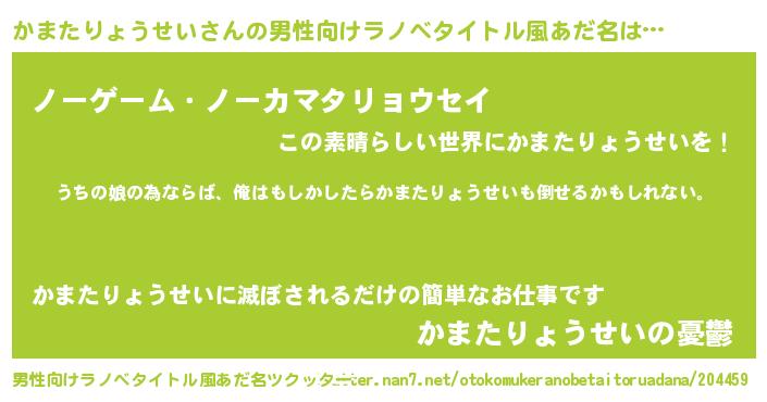 | ファンタジー風あだ名 | 『エターナルカマタリョウセイー』 |