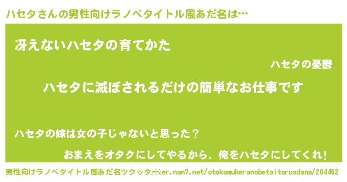 | 女子向けラノベタイトル風あだ名 | 『横柄ハセタと宰相陛下』 |
