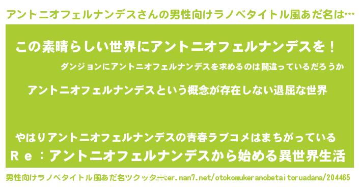 | 女子向けラノベタイトル風あだ名 | 『異世界で失敗しない100のアントニオフェルナンデス』 |