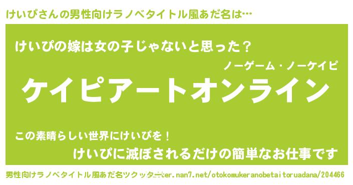 | 胡散臭い通販商品みたいなあだ名 | 『億万長者になれる霊験あらたかなお札…その名も「けいぴ」』 |