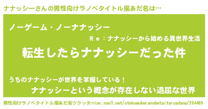 | ヘコむあだ名 | 『ナナッシー(苦笑)』『ナナを』 |