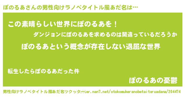 | 女子向けラノベタイトル風あだ名 | 『異世界で失敗しない100のぽのるあ』 |