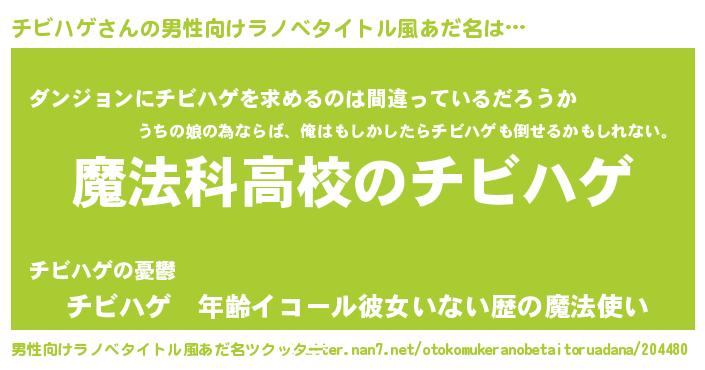 | 女子向けラノベタイトル風あだ名 | 『チビハゲアンティーク』 |