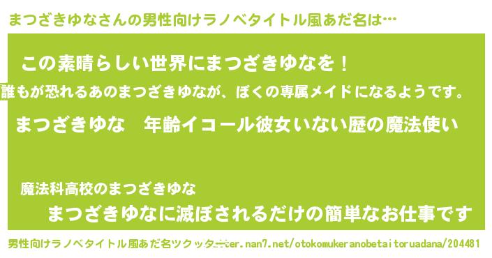 | 女子向けラノベタイトル風あだ名 | 『まつざきゆなの玉の輿計画!』 |