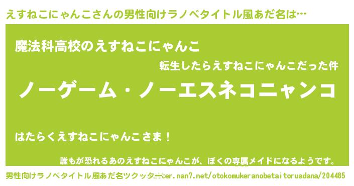 | 女子向けラノベタイトル風あだ名 | 『死神えすねこにゃんこの再婚』 |