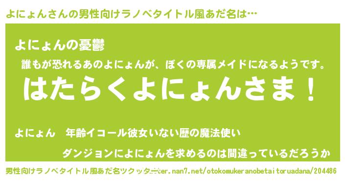 | 胡散臭い通販商品みたいなあだ名 | 『必ず成功する霊験あらたかなお札…その名も「よにょん」』 |