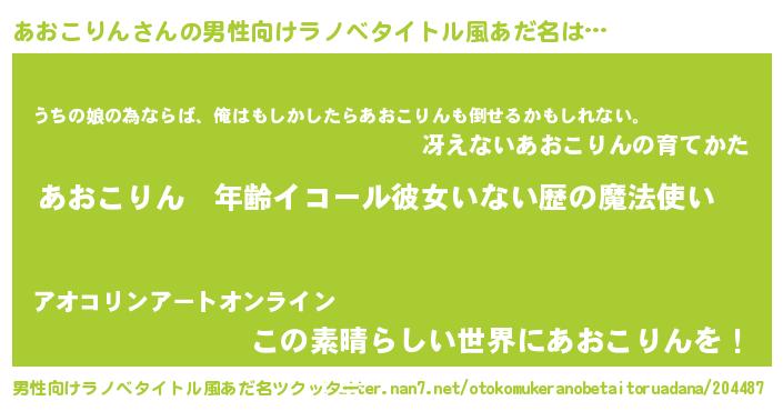 | 女子向けラノベタイトル風あだ名 | 『あおこりんの玉の輿計画!』 |