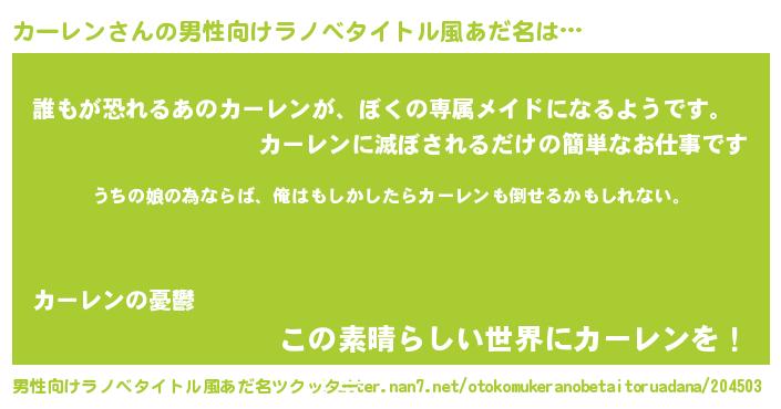 | 女子向けラノベタイトル風あだ名 | 『カーレンの婚約者』 |