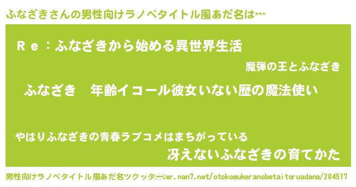 | 肩書あだ名 | 『ふなざき上級大将』『ふなざき閣下』 |