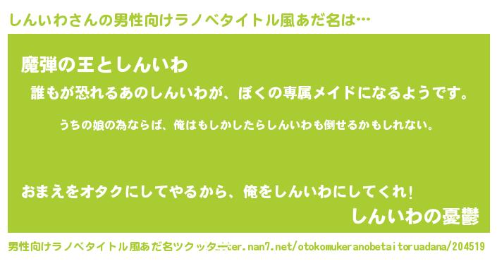 | 女子向けラノベタイトル風あだ名 | 『しんいわの婚約者』『しんいわ恋絵巻』 |