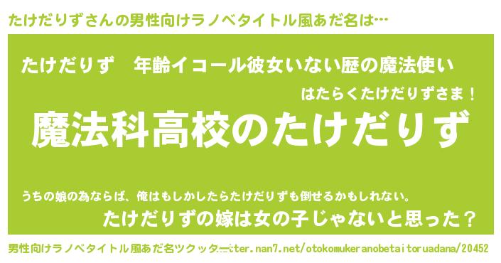 | 女子向けラノベタイトル風あだ名 | 『たけだりずなんてお断りですっ。』 |