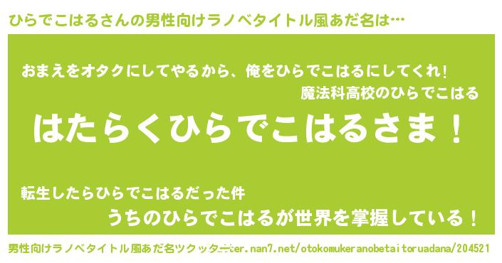 | 胡散臭い通販商品みたいなあだ名 | 『100人中100人が認めたマグネット磁石…その名も「ひらでこはる」』 |