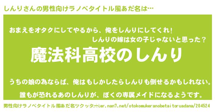 | 女子向けラノベタイトル風あだ名 | 『しんりなんてお断りですっ。』 |