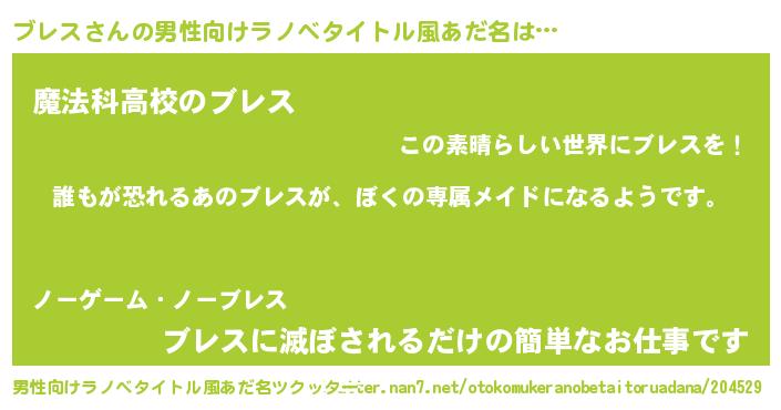 | 胡散臭い通販商品みたいなあだ名 | 『来世でも幸せになれる健康食品…その名も「ブレス」』 |