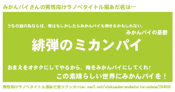 | 意味不明あだ名 | 『みかんパイフォーエバー』 |